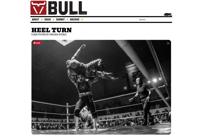 New Flash in BULL Posted on August 28, 2025 by Chelsea Stickle Tagged dating, flash, flash fiction, free read, wrestling I’m delighted to have a new flash in BULL about wrestling and dating! Check it out here. Share this: Click to share on X (Opens in new window) X Click to share on Facebook (Opens in new window) Facebook Like Loading... Related